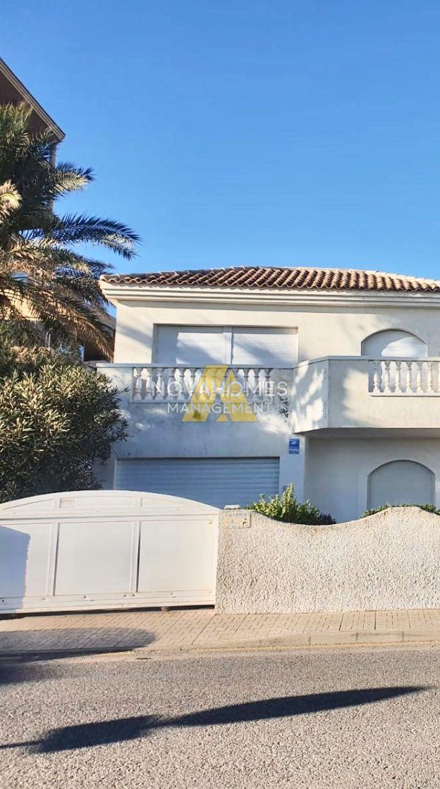 Preciosa Villa independiente con piscina en primera línea del Mar Mediterráneo. Cuenta con una parcela independiente de 600m2 y 250 m2 de vivienda aproximadamente. Distribuido en dos plantas, en la planta superior cuenta con un apartamento independiente de un dormitorio, gran terraza con vistas al mar , baño completo, cocina abierta al salón con acceso directo al solarium y terraza. En la planta inferior encontramos cocina independiente totalmente equipada con comedor contiguo, gran salón luminoso con chimenea, dos dormitorios con armarios empotrados y dos baños grandes, uno de ellos en suite. Todas las estancias con amplias balconeras con acceso al jardín y a la zona de piscina. La propiedad cuenta con un semisótano de 60 m2. Ubicado en una zona tranquila y paradisíaca, con una orientación excelente y a tan sólo unos metros de la playa. En la zona encontramos toda clase de servicios para la práctica de deportes naúticos, vela o los mejores campos de golf. Aeropuerto internacional a 45 min.