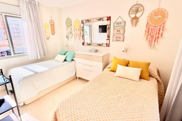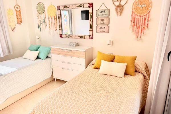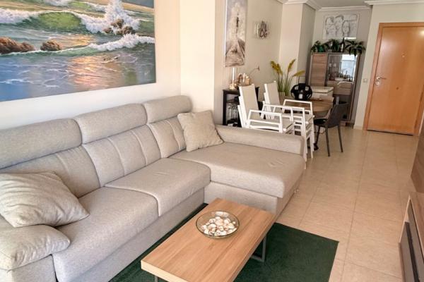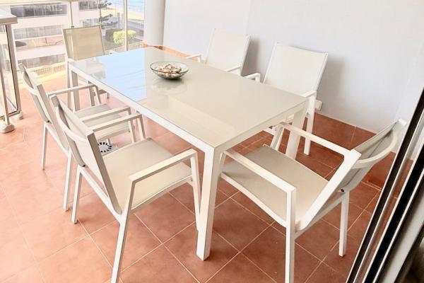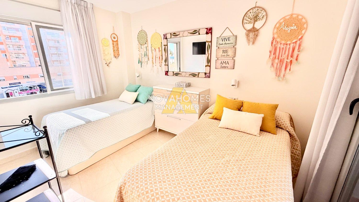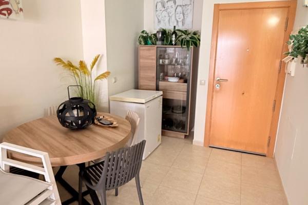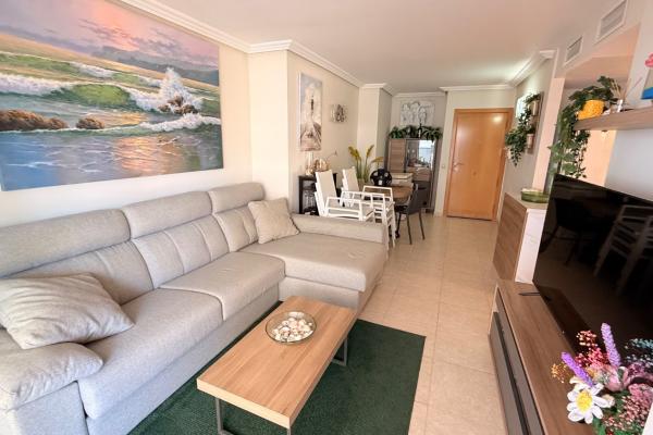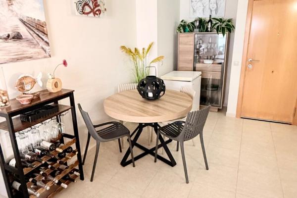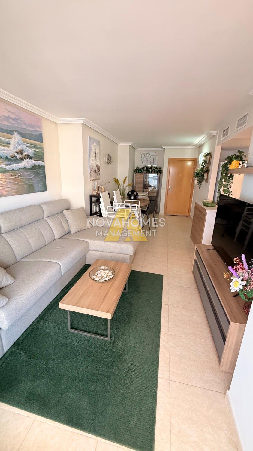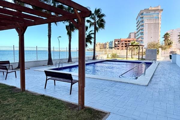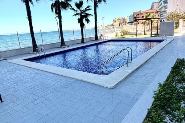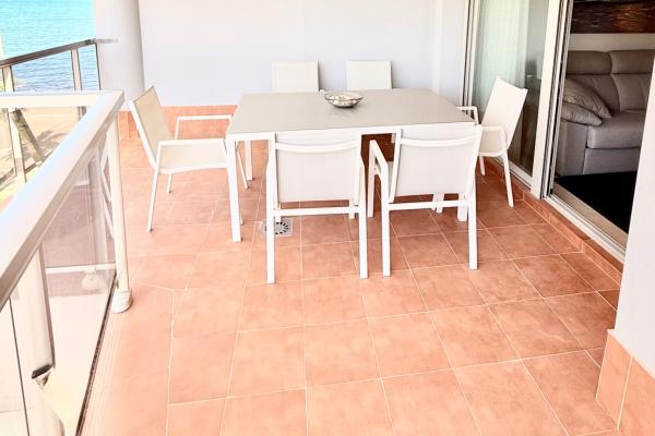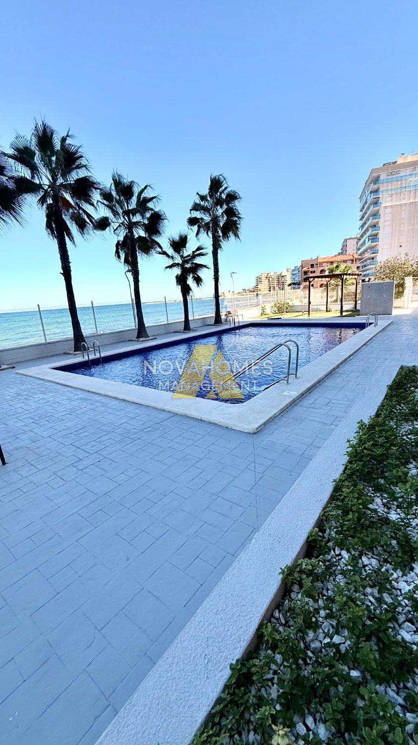 Beautiful apartment a few meters from the Mediterranean Sea on the first line with two bedrooms, bathroom, kitchen with gallery and living room with access to a large terrace. The property has ducted air conditioning, fibre optics, automatic blinds. It is within a private urbanization on the seafront, with a swimming pool and garden areas. It has an outdoor parking space in the private area of the urbanization and all kinds of services nearby. This advertisement and its visual content are non-binding, should be considered for information purposes only and may be subject to errors and/or changes.
