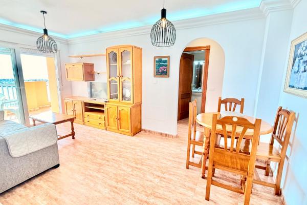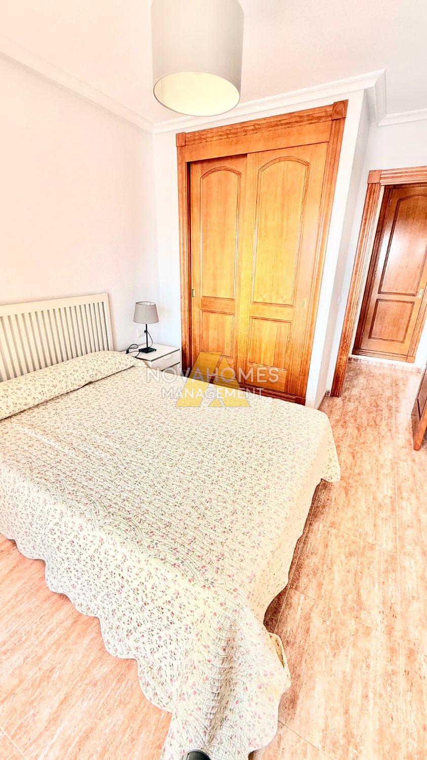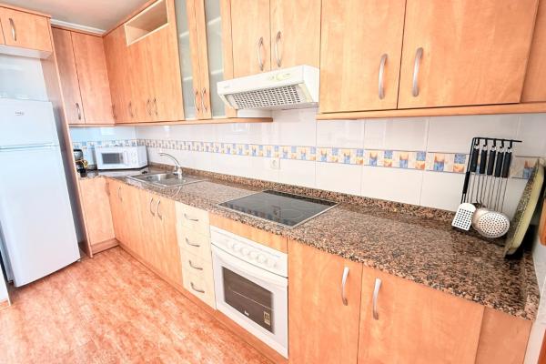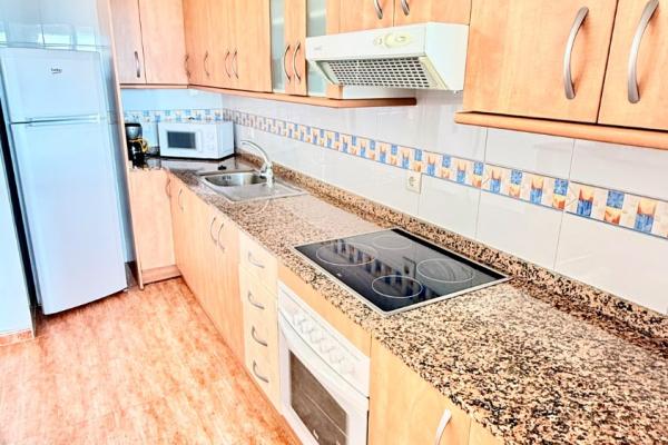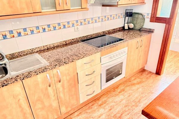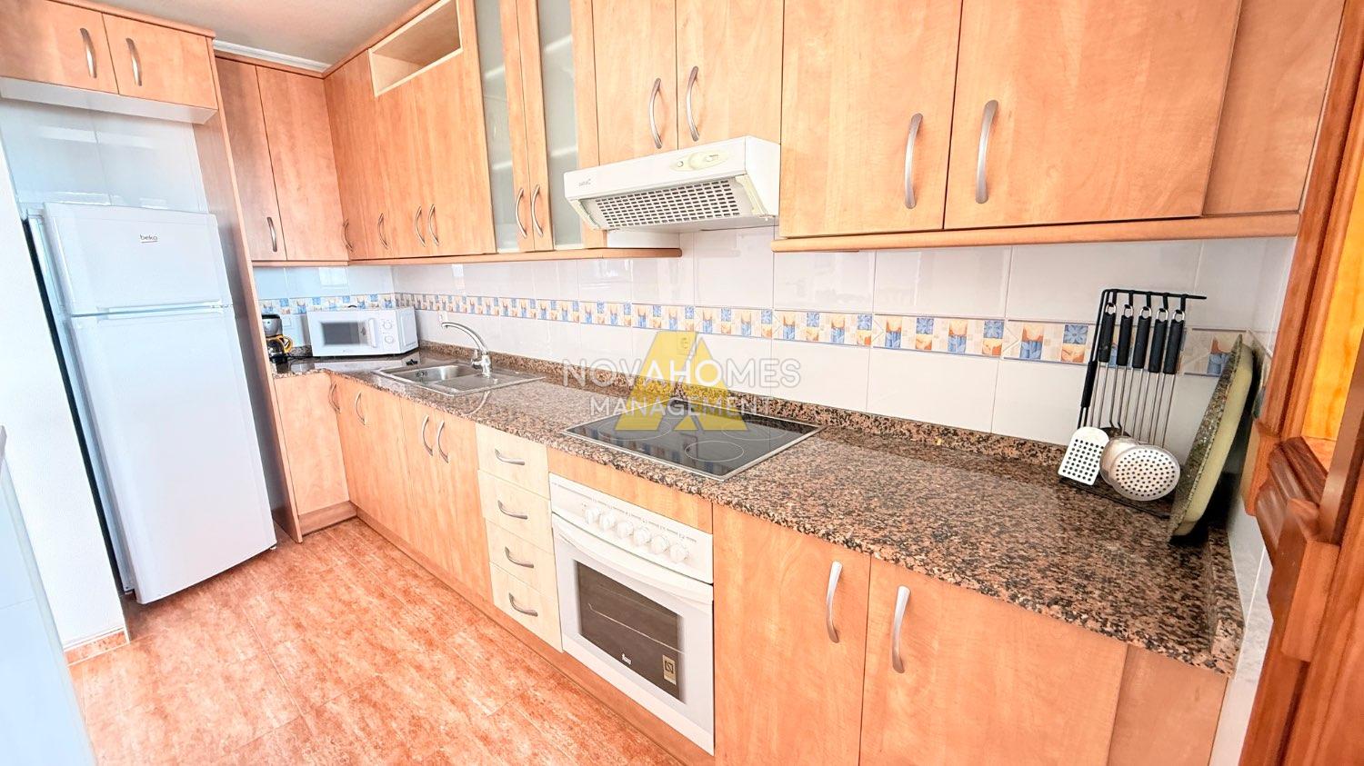 Esta luminosa vivienda te recibe con un acogedor salón comedor con acceso a su amplia terraza, perfectas para disfrutar del clima y las vistas durante todo el año. Dispone de cocina totalmente equipada, con una práctica zona de lavadero y despensa con ventana que facilita la ventilación de la vivienda.