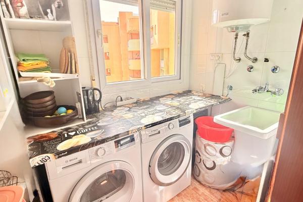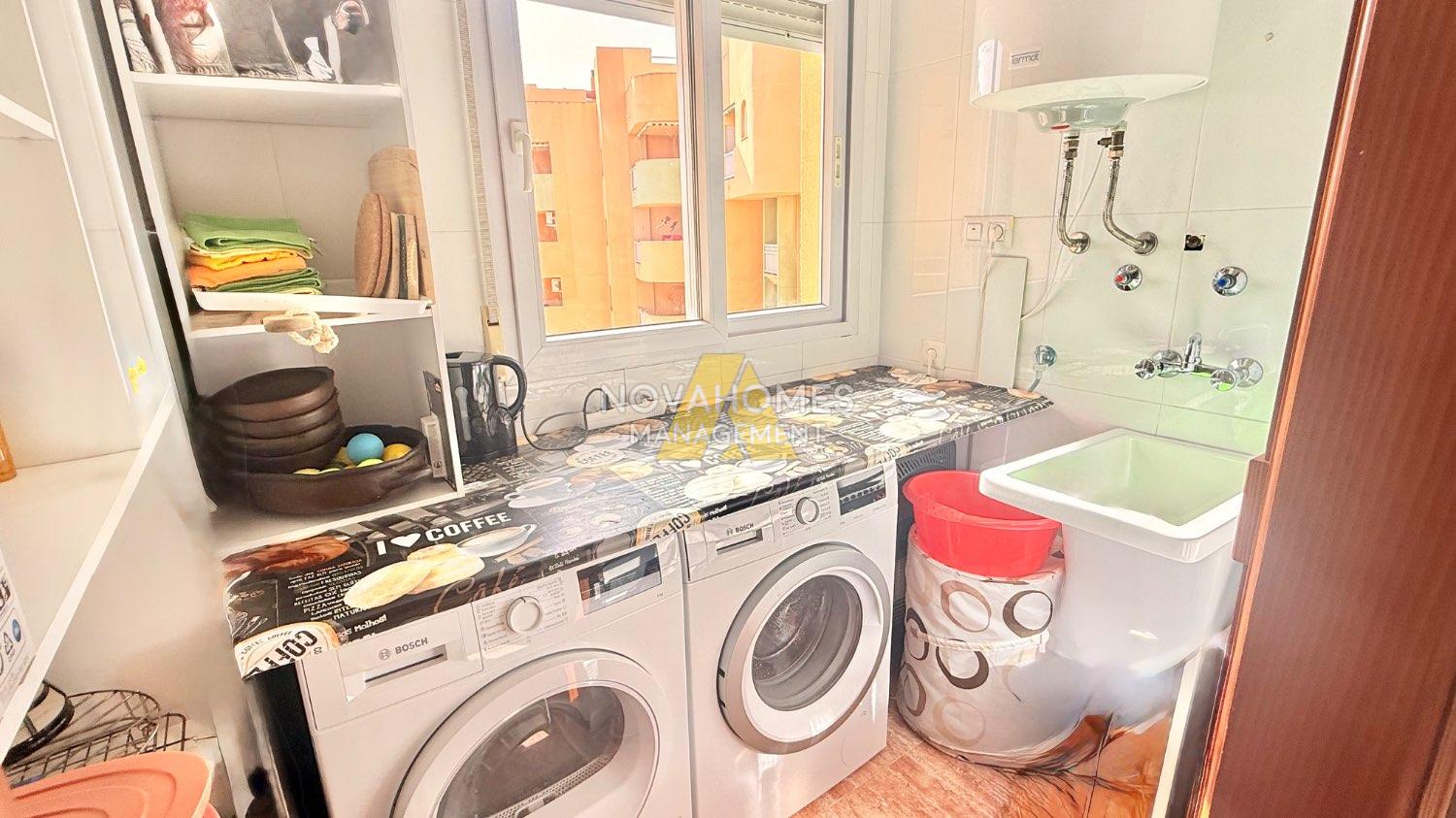 Esta luminosa vivienda te recibe con un recibidor que distribuye sus dos dormitorios uno de ellos con baño completo, comedor con acceso a su amplia terraza, perfecta para disfrutar del clima y las vistas durante todo el año. Dispone de cocina totalmente equipada, con una práctica zona de lavadero y despensa con ventana que facilita la ventilación de la vivienda.