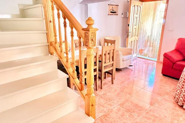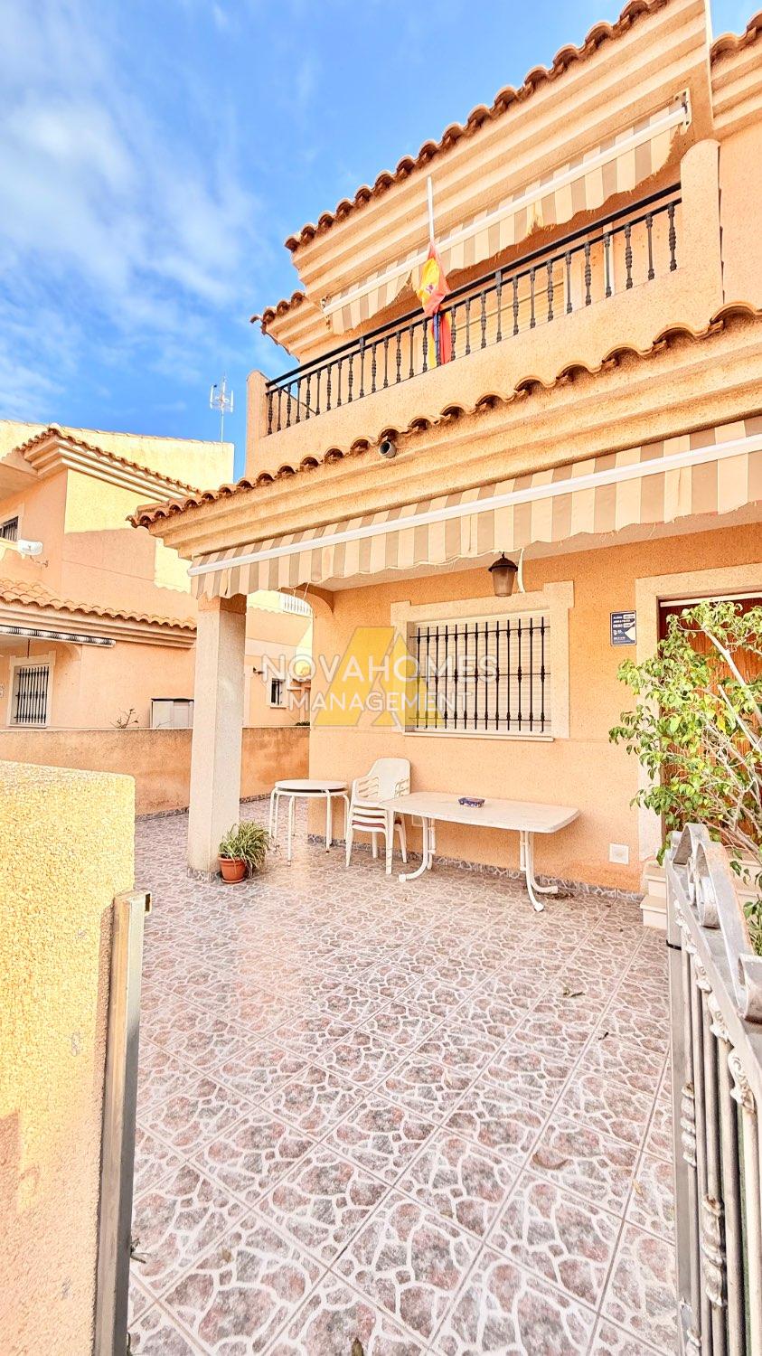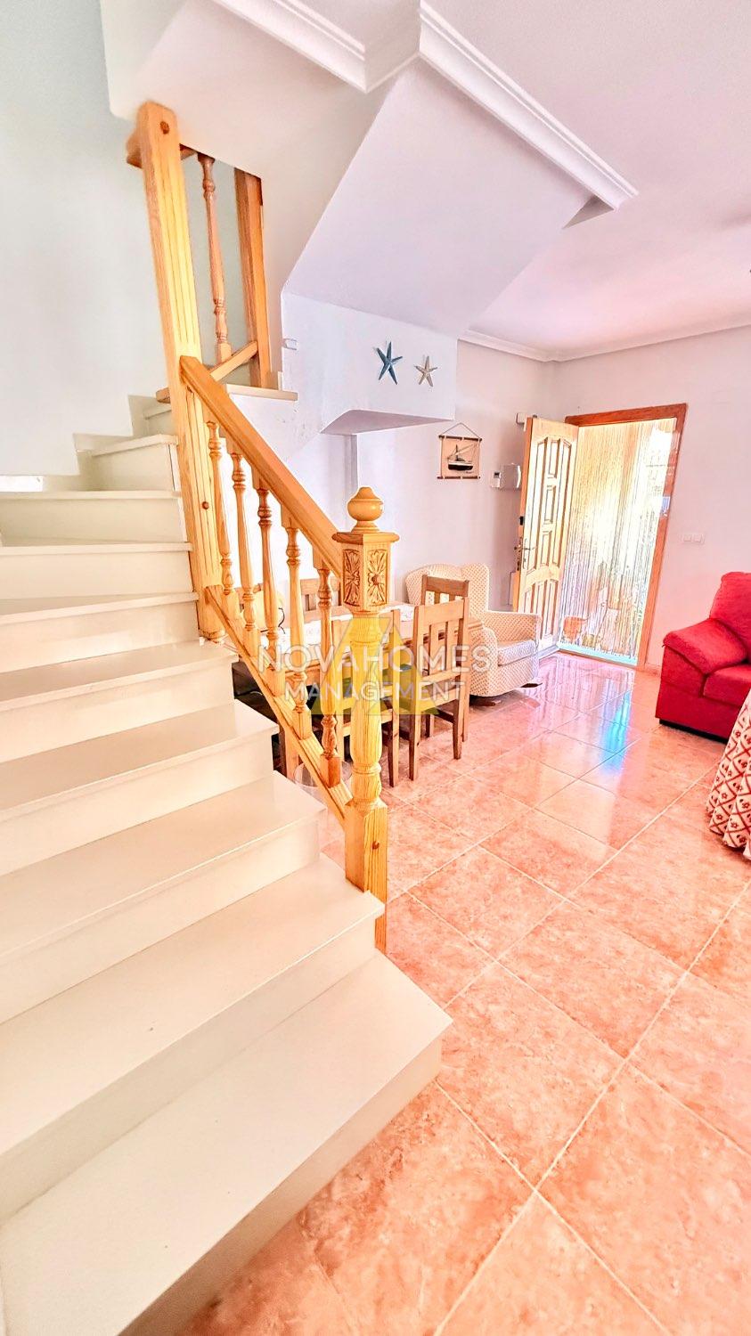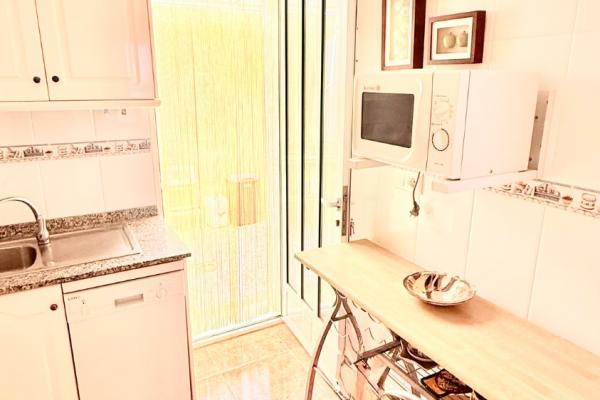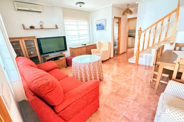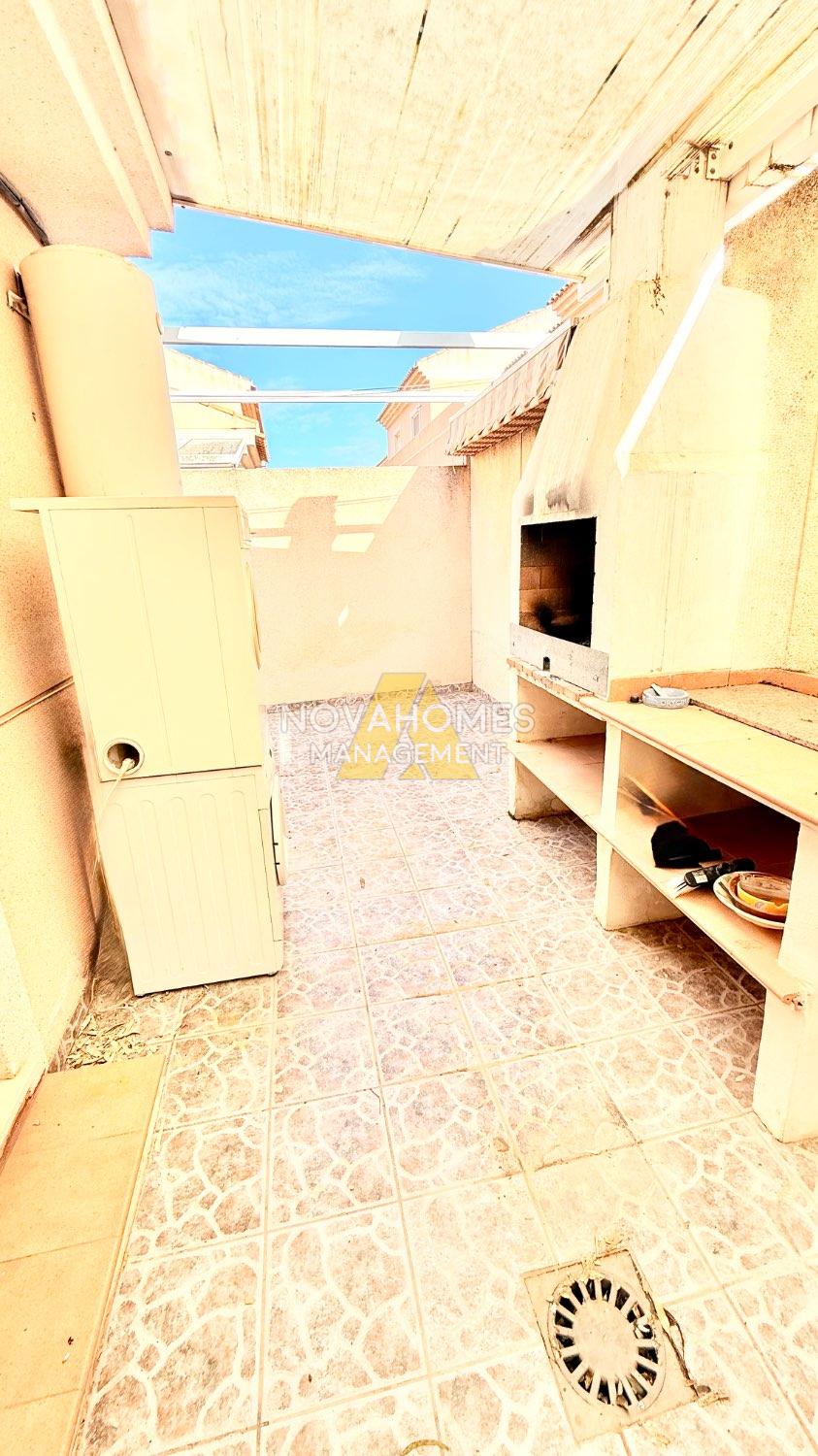Luminoso dúplex en venta muy cuidado en perfectas condiciones en una zona residencial tranquila y con buena accesibilidad a tan solo unos metros del Mar. La vivienda con ventilación cruzada y mucha luz, se distribuye en dos plantas cuenta y garaje anexo , en la planta inferior, una gran terraza delantera con porche y patio trasero techado con barbacoa. Cuenta con un salón comedor, baño completo, habitación y cocina independiente, con salida al patio de la zona trasera de la vivienda. En la planta superior nos encontramos con dos habitaciones amplias con armarios empotrados, baño completo y terraza.