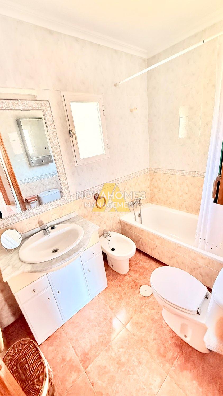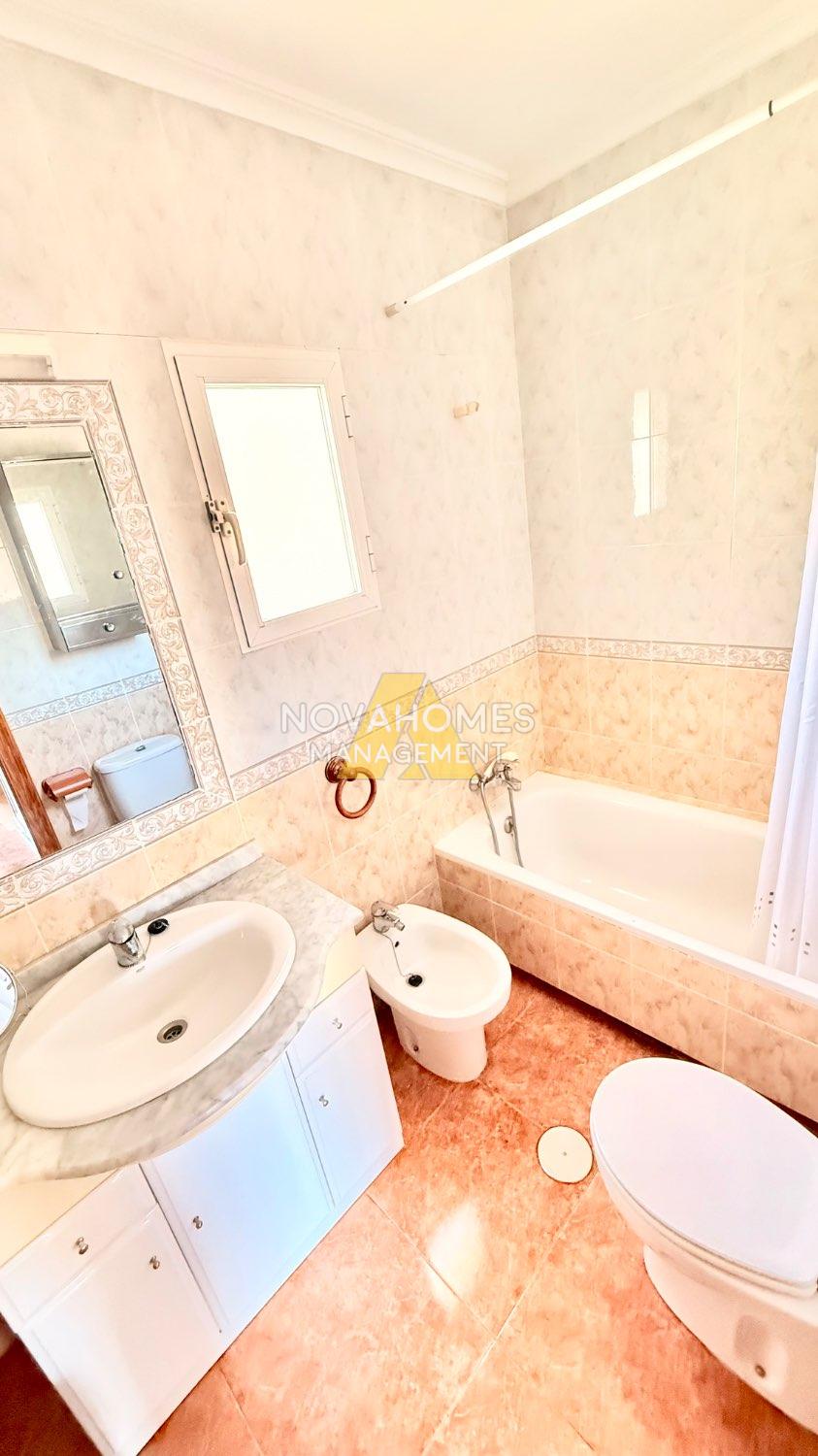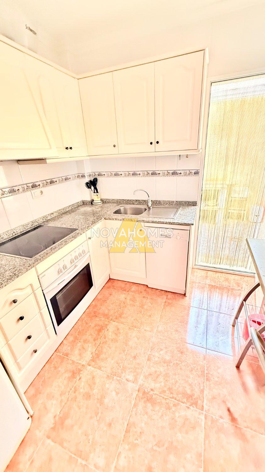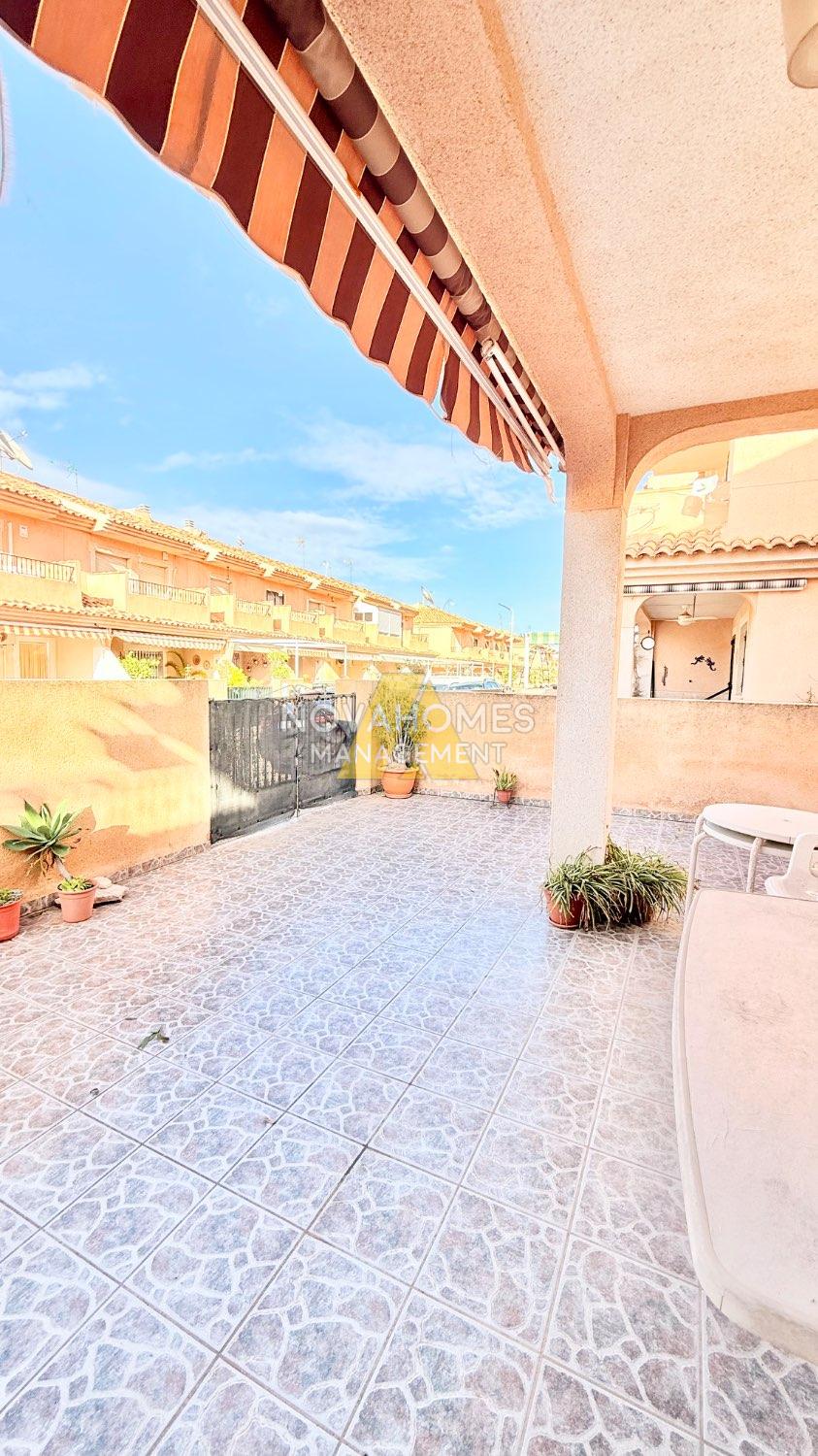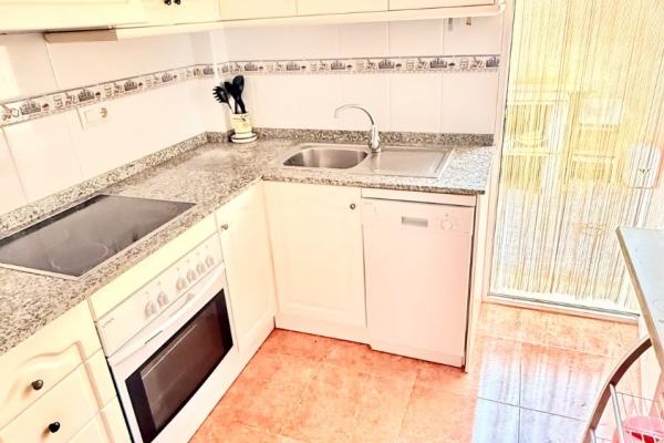 Luminoso dúplex en venta muy cuidado en perfectas condiciones en una zona residencial tranquila y con buena accesibilidad a tan solo unos metros del Mar. La vivienda con ventilación cruzada y mucha luz, se distribuye en dos plantas cuenta y garaje anexo , en la planta inferior, una gran terraza delantera con porche y patio trasero techado con barbacoa. Cuenta con un salón comedor, baño completo, habitación y cocina independiente, con salida al patio de la zona trasera de la vivienda. En la planta superior nos encontramos con dos habitaciones amplias con armarios empotrados, baño completo y terraza.