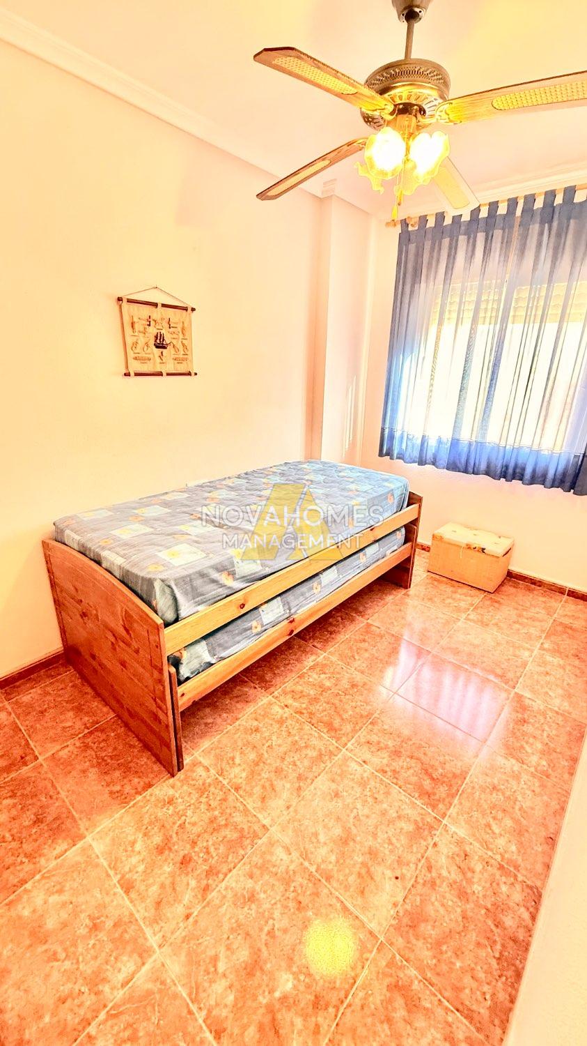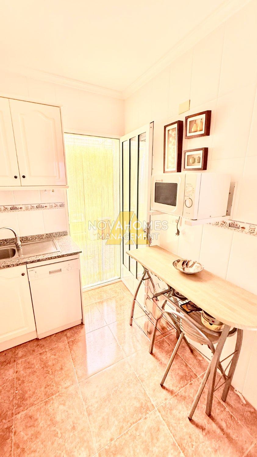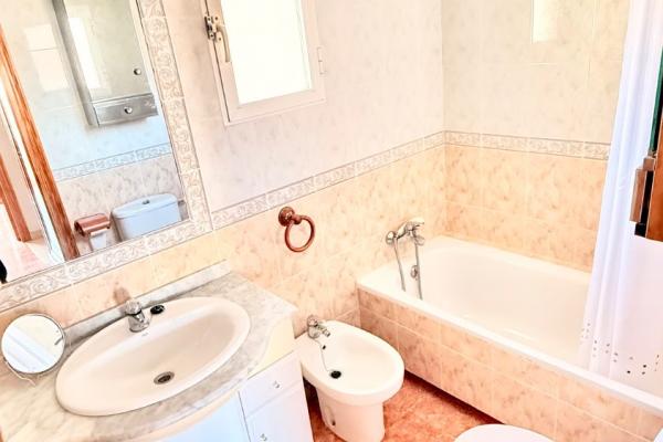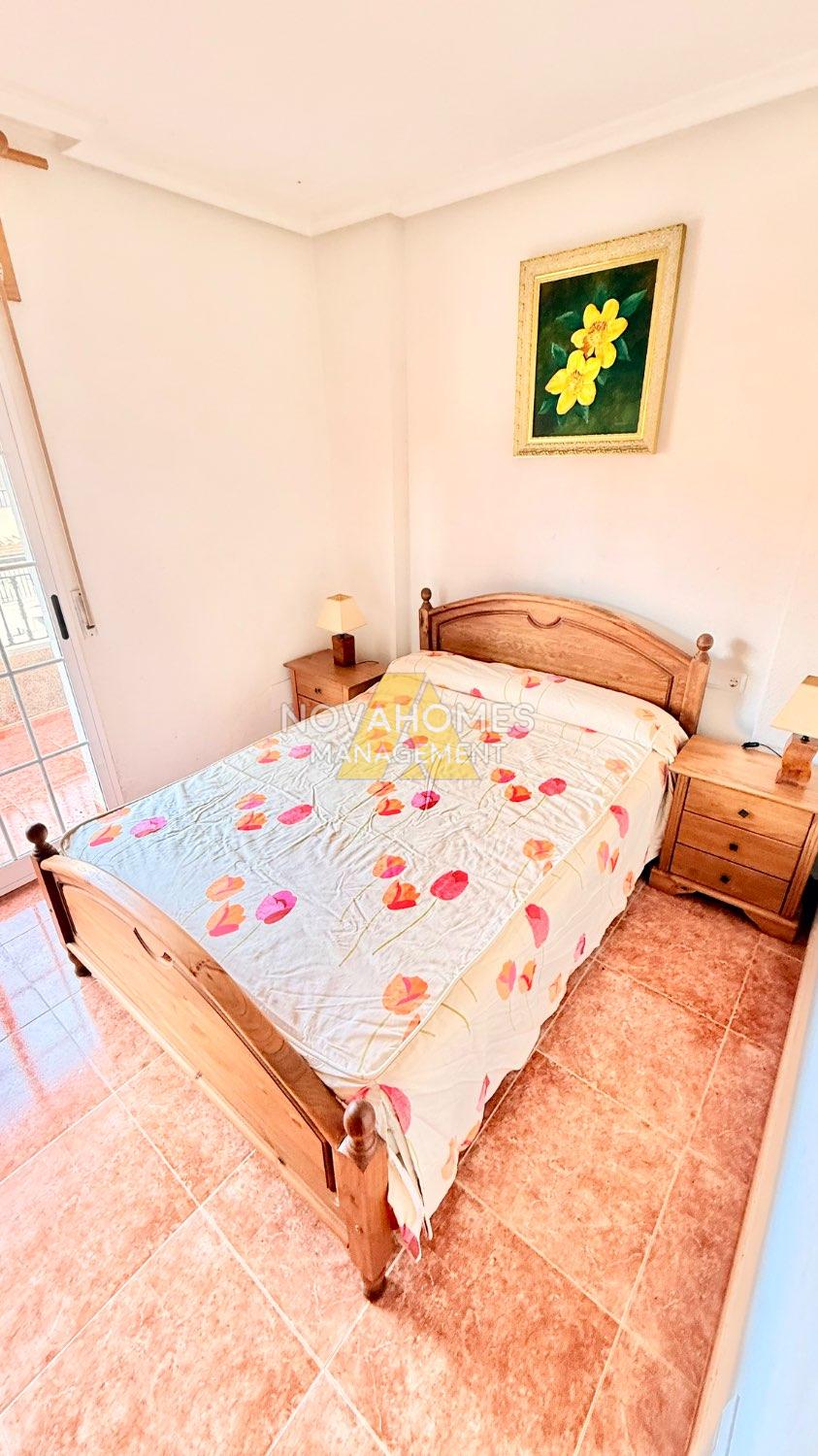 Luminoso dúplex en venta muy cuidado en perfectas condiciones en una zona residencial tranquila y con buena accesibilidad a tan solo unos metros del Mar. La vivienda con ventilación cruzada y mucha luz, se distribuye en dos plantas cuenta y garaje anexo , en la planta inferior, una gran terraza delantera con porche y patio trasero techado con barbacoa. Cuenta con un salón comedor, baño completo, habitación y cocina independiente, con salida al patio de la zona trasera de la vivienda. En la planta superior nos encontramos con dos habitaciones amplias con armarios empotrados, baño completo y terraza.